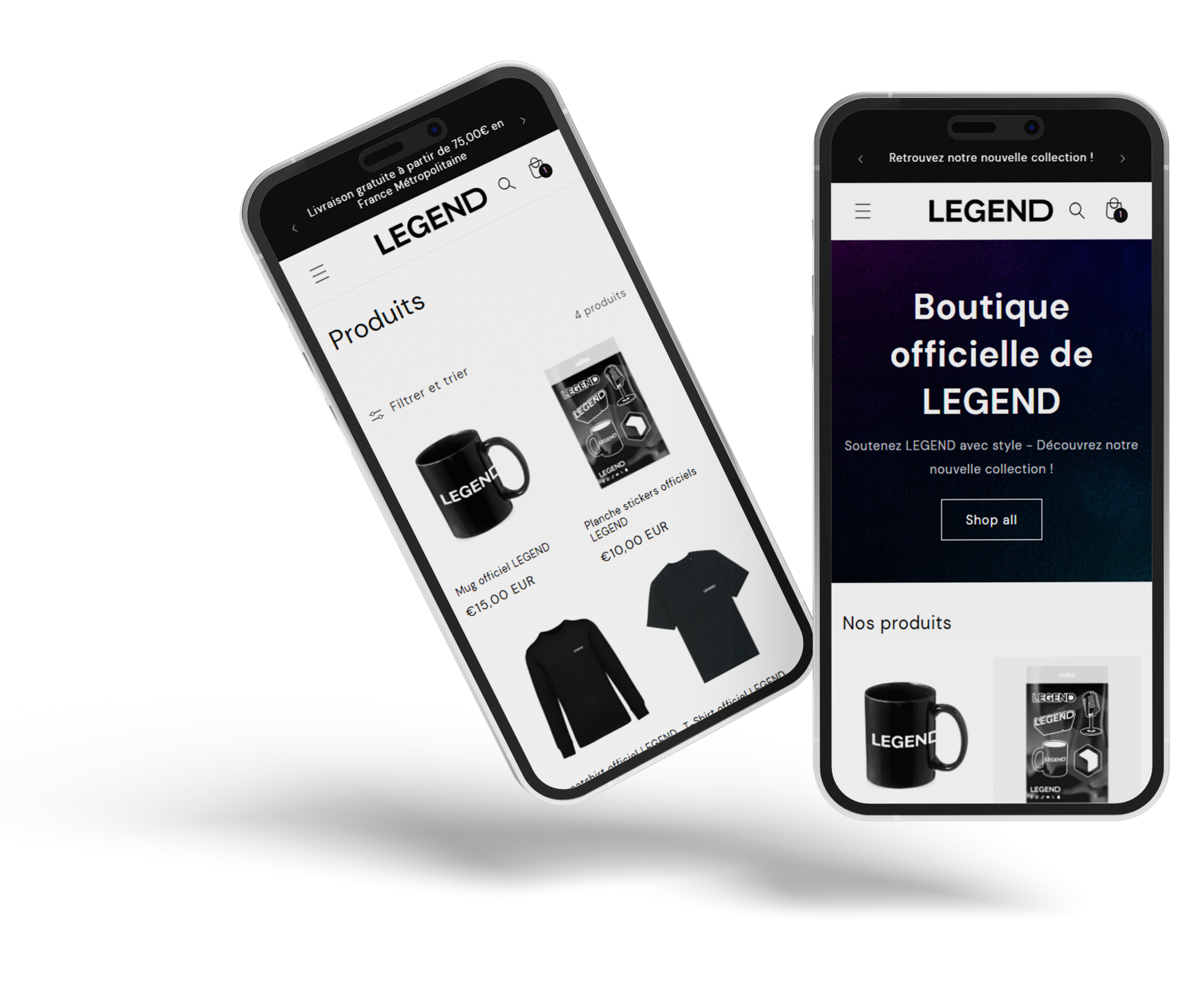 Les équipes de LEGEND nous ont confié la mission de développer leur première boutique en ligne sur laquelle nous vendons du merchandising.